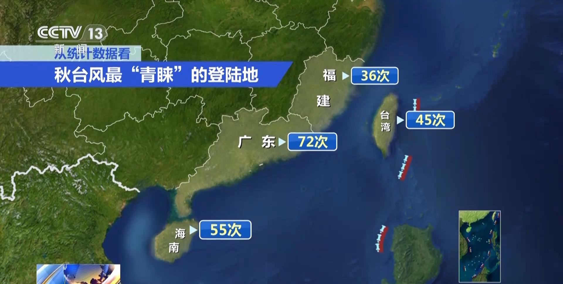在数量上,夏台风略胜一筹。但从强度来看,秋台风中有更多“狠角色”。在1949年至2023年登陆我国的秋台风中,34.88%为台风级别,17.95%以强台风级别登陆,4.10%为超强台风级别。